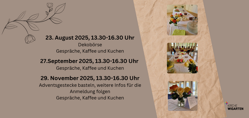 Du bist bei uns richtig, wenn du einfach mal etwas Zeit mit anderen Frauen verschiedenen Alters verbringen möchtest. Gespräche über Alltagsthemen oder auch ganz Persönliches sind dir wichtig. Wir möchten wertvolle Beziehungen zwischen Frauen fördern und eine Gemeinschaft schaffen, in der du ganz offen sein darfst und auch ermutigt und gestärkt wirst.